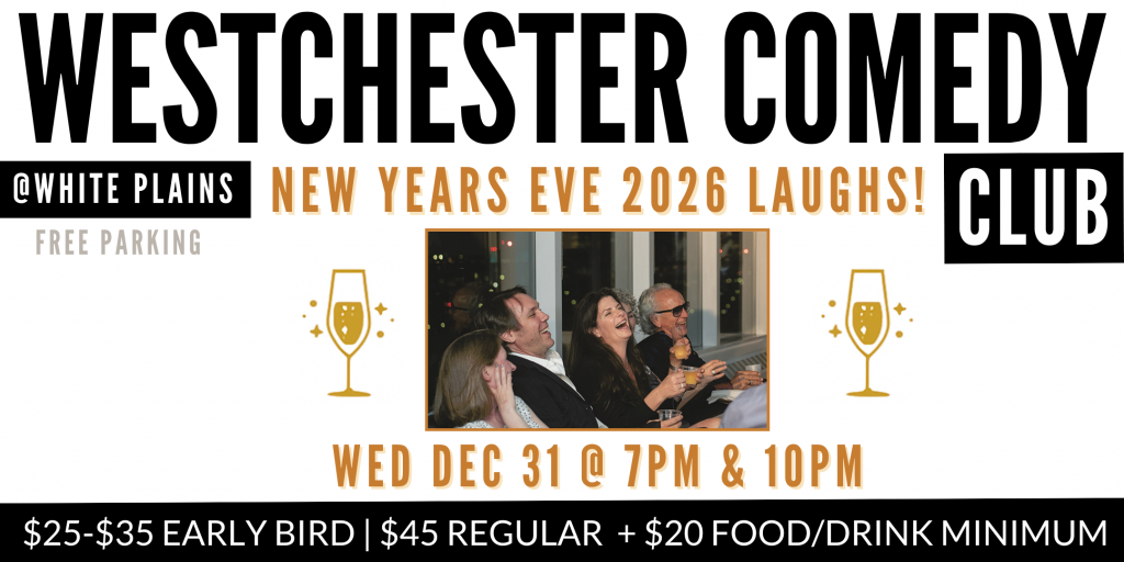 Our final 2025 Westchester comedy show will be: New Years Eve Laughs in White Plains – Wednesday December 31 – with shows at 7pm and 10pm.